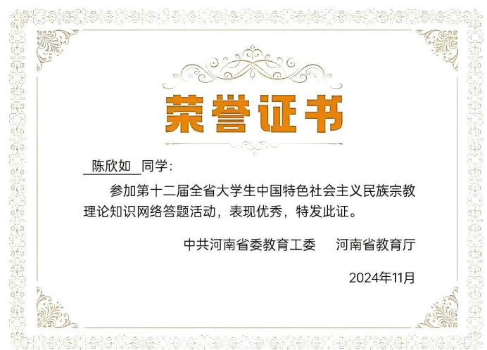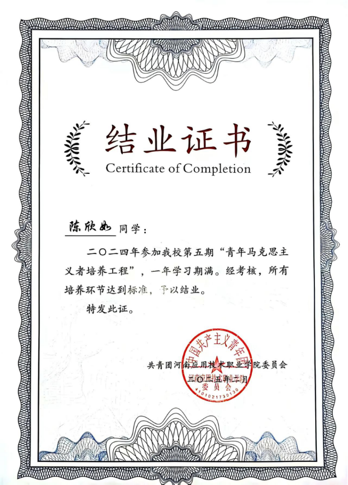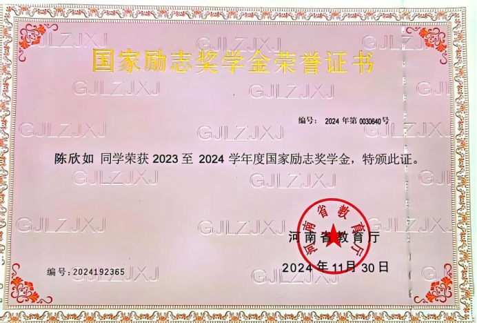 “博学之,审问之,慎思之,明辨之,笃行之。”在学习方面,该生始终以严谨的态度和饱满的热情深耕专业领域,用行动诠释着“勤学善思”的真谛。该生深知扎实的专业基础是成长的基石,课堂上始终保持专注,紧跟老师思路梳理知识框架,课后主动梳理笔记、复盘重难点。面对复杂的专业知识,该生从不满足于“被动接收”,而是主动探索知识的深度与广度。该生根据自身情况设置短期目标并努力达成,认真学习专业课知识,记录每节课笔记,定期对知识点进行整理,遇到不解的问题积极寻求老师的帮助解答。该生努力解决每一个难点,扎实学习,争做奋进者,不断向“更好”迈进。课程学习之余注重专业知识实践运用,积极参加各项竞赛、考试,在两年在校学习中,始终保持综合第一的优异成绩,并在专业中排名前列,获得“三好员工”的荣誉。该生将以谦逊的态度不断努力学习,扎实基础,争取取得更优异的成绩。