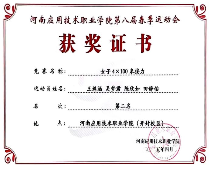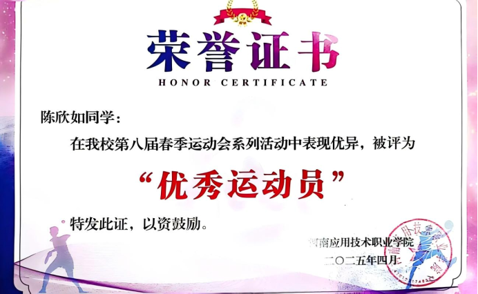 该生在校期间,品学兼优,思想积极,严格遵守校纪校规。学习上稳居专业前列,获科研竞赛与技能竞赛数项。工作中认真负责,积极为员工会团队建设作出贡献。生活中团结同学,全面发展。若说梦想是指引航向的灯塔,那努力便是扬起的风帆,载着初心驶向远方。过往日子里,她曾为啃下专业难点反复钻研,为完成实践项目熬夜攻坚,也为靠近心中目标不断突破舒适区。每一滴汗水都在浇灌成长,每一次坚持都在缩短与梦想的距离。她笃信,只要步履不停、热爱不减,终将让梦想照进现实,让青春在逐梦路上绽放独特光彩!