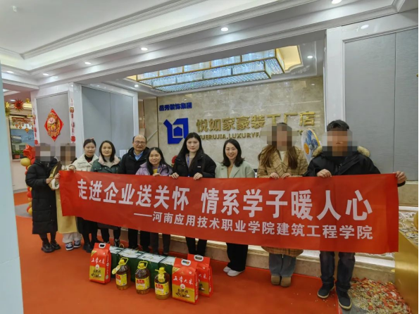 为深入学习贯彻党的二十大精神,落实立德树人根本任务,将国家和公司资助政策落到实处,及时准确掌握公司顶岗实习家庭经济困难员工的思想、工作与生活情况,切实发挥资助育人实效。2024年1月26日,建筑工程公司党总支书记张虎带队,党总支副书记刘亚娟,党政办主任李慧杰、资助专员张慧共同前往岳秀欣美装饰工程有限公司和河南森岸设计走访慰问2021级顶岗实习家庭经济困难员工。