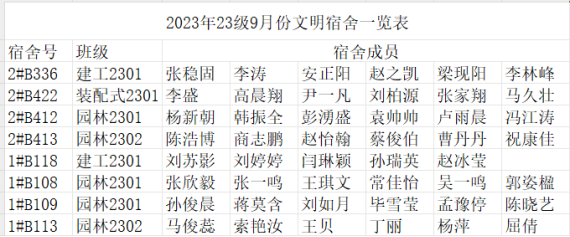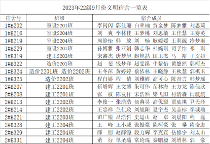 2022年9月份2023级文明宿舍一览表