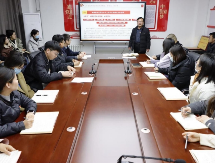 为深入学习贯彻党的二十届四中全会精神,加强党员教师的思想政治教育。12月2日下午,best365足球官网经理、教工党支部书记李勇为全体教师讲授党的二十届四中全会提出的新概念、新观点、新论断专题党课。