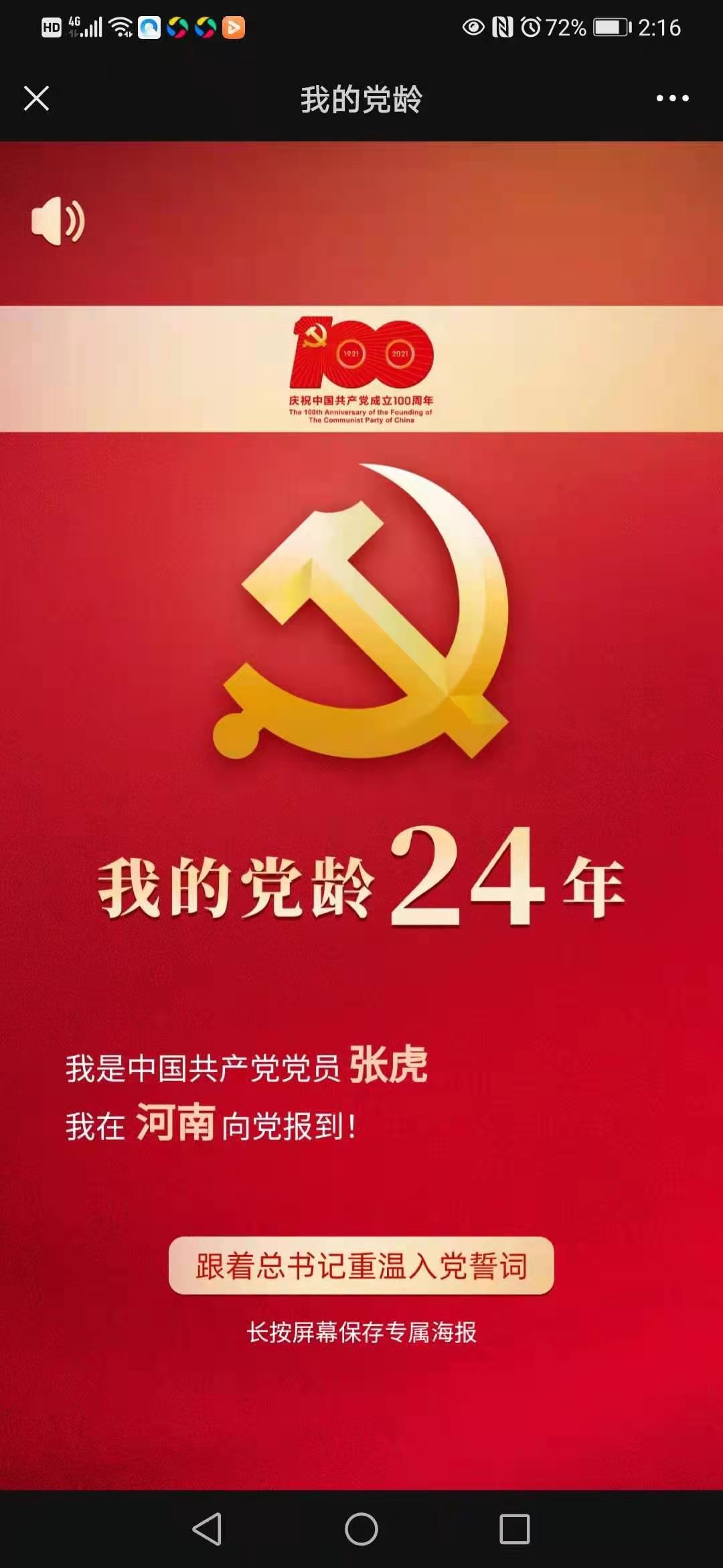 为庆祝中国共产党成立100周年,进一步激发广大党员教师爱党爱国的情怀,坚守党员的初心和使命。2021年6月23日,建筑工程公司党总支组织党员教师开展“晒出党龄,我在河南向党报到”活动。