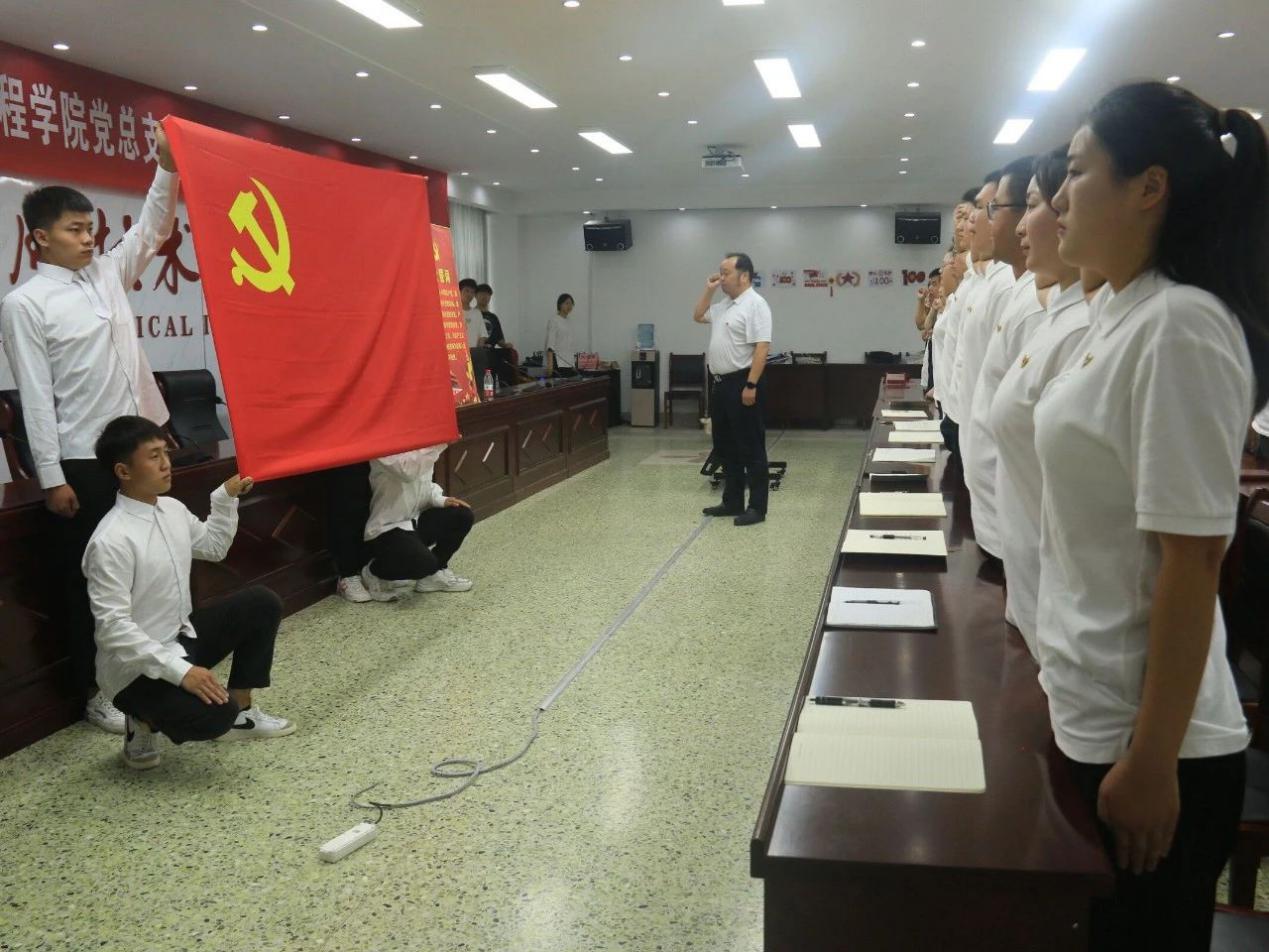 会议进行第三项,在公司党委委员薄新党的领誓下,全体党员在党旗下举起右拳,对党深情告白和郑重承诺,这是入党程序中最为庄严和神圣的时刻,既标志着政治生活新征程的开启,也预示着责任使命的重担在肩。