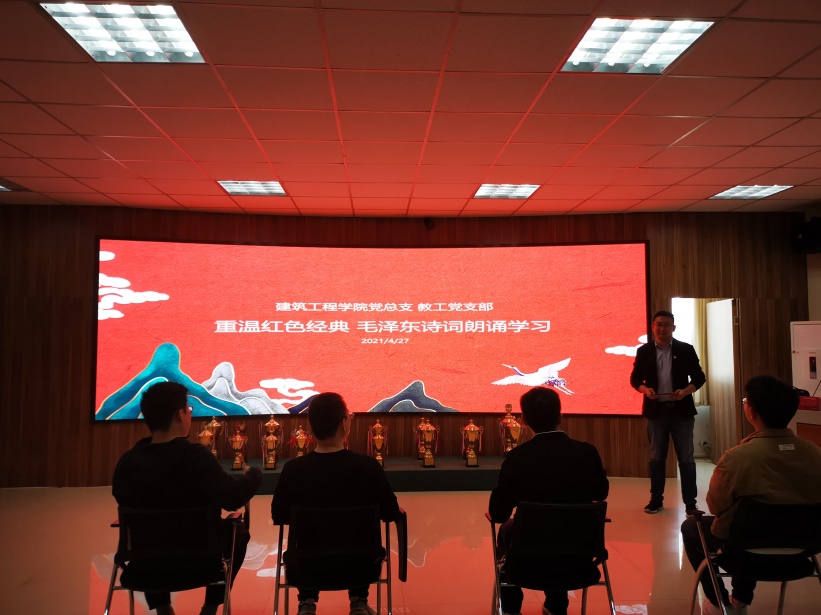 为进一步落实建筑工程公司党总支党史学习计划要求,2021年4月27日下午,建筑工程公司党总支教工党支部开展“重温红色经典·毛泽东诗词朗诵学习” 活动,活动由best365足球官网副经理娄焕主持。
