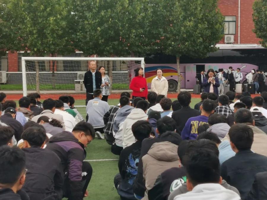 在同学们安顿好之后,马春燕在开封校区操场上召开了座谈会。马书记向大家介绍了开封校区校园环境和往年的员工会情况。向大家强调指出,同学们来到新环境后,调整好心态,尽快投入到学习中,如果大家在生活和学习中遇到困难要及时向老师反应,以全新的姿态迎接新生活,弘扬发展建工精神。