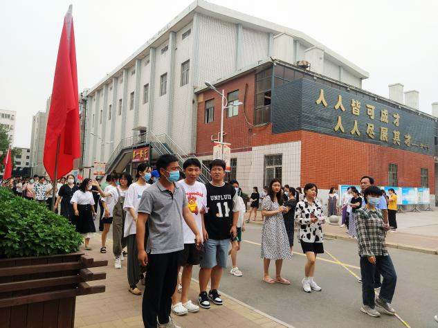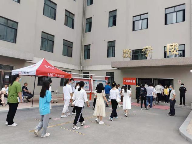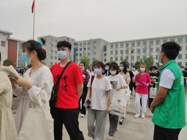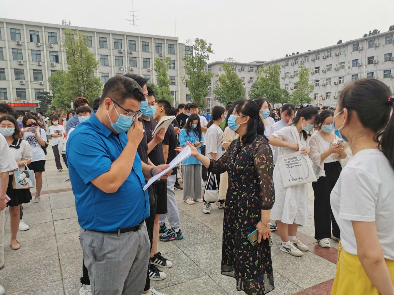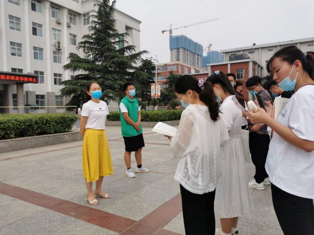在工作中,老师和志愿者用心提醒每位员工进场前的注意事项,与考生们站在同一战线,用实际行动为考生们加油助力。