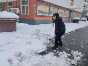 天气虽然寒冷,但是都没有抵挡住小筑们扫雪的热情。大家奋勇争先,躬着身子、握着扫把、抡起铁锹,铲的铲、扫的扫、推的推,默契配合,铁锹声声不绝于耳,铲雪清雪热火朝天。积雪和冰层被一点点地铲开,尽管大家的脸都冻得通红,但手中的扫雪工具却不停地挥舞着,忙得浑身是汗,忙碌的身影形成了风雪中一道道靓丽的风景线。同时,也给寒冷的冬天带来浓浓的暖意。