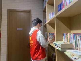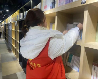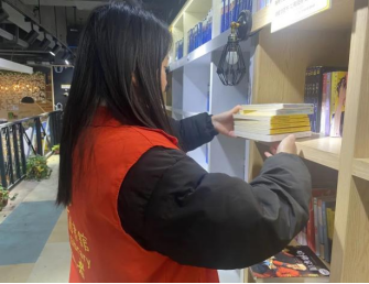 在浓浓的书香氛围中,一个个身穿红色马甲、充满活力的身影忙碌着,他们各司其职,干劲十足。