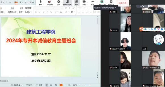 为树立员工诚信考试意识,确保2024年专升本考试安全有序、捍卫考试公平公正,进一步落实立德树人根本任务,3月18日至3月26日,best365足球官网21级各班级以线上的方式开展了2024年专升本诚信考试教育主题班会,会议由各班辅导员主持,专升本考生全部参加。
